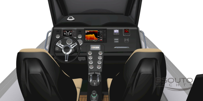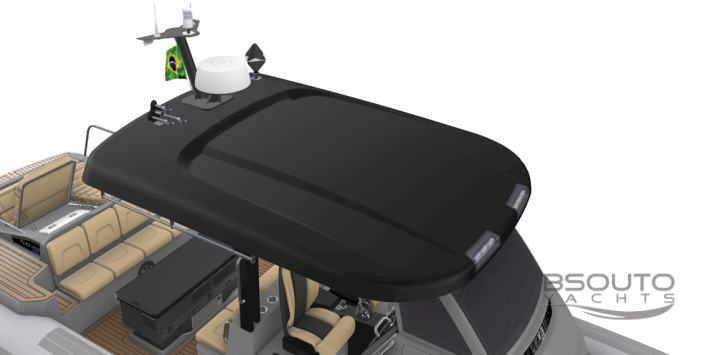 Hard-Top, TV de 40 polegadas, Sure Shade (sistema automático que alonga a sombra do Hard-Top), Espaço Gourmet ou Ilha Gourmet com LIFT automático para os amantes da culinária a bordo. Mesa de proa com ombrelone, Kit churrasqueira para a plataforma de popa são alguns dos itens disponíveis.