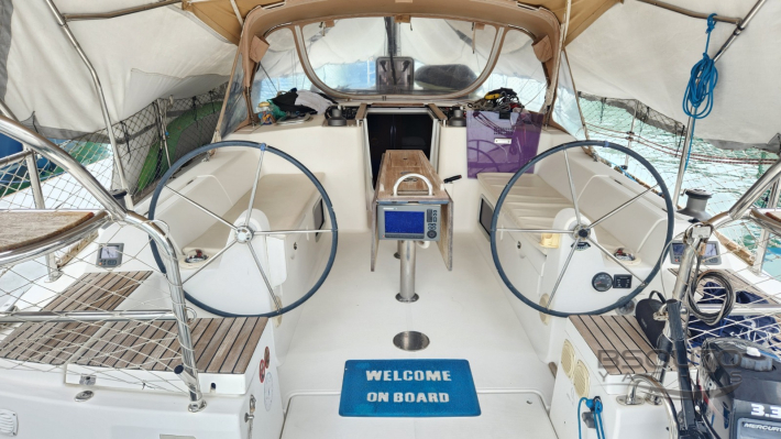 MOTOR COM 1.900 HORAS, RABETA REVISADA EM OUTUBRO/24, VELEIRO COM DUAS RODAS DE LEME. |