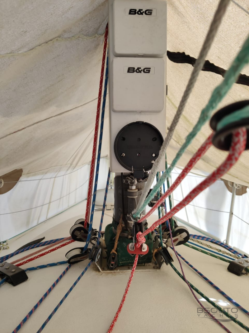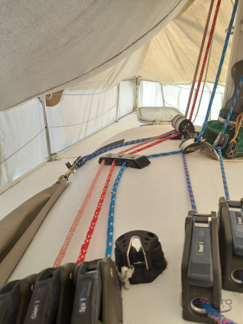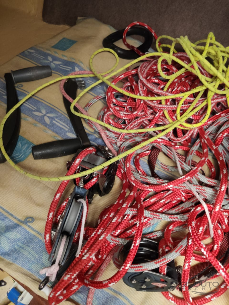5 balões, 1 jogo de velas North sails novo, 4 genoas, 3 grandes, 1 jogo de velas de transporte, rádio vhf portátil, 2 motores de popa, cabos novos de Spectra, eletrônicos BeG, capa baily, etc.
